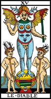 Um dia com o dinamismo e dinheiro. O Diabo manifesta o destino (bom ou mau). Poder de sedução, impulso cego, tentação, obsessão. Desvio sexual. Um estado mental (confesional). As paixões carnais descontroladas.