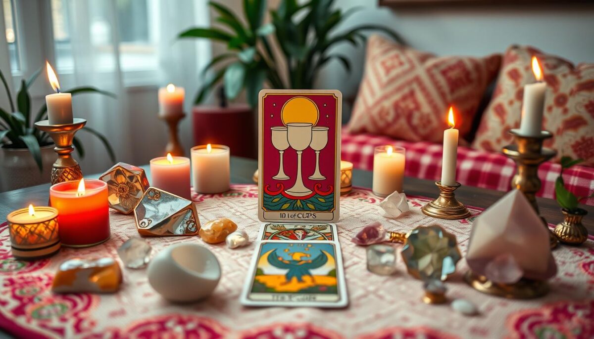 - Defina a intenção: Antes de começar, pense nas questões emocionais e familiares que você quer explorar com o 10 de Copas.