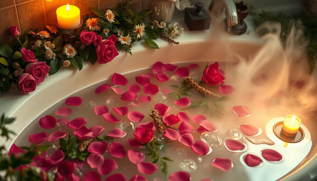 Para fazer um banho de limpeza espiritual, você precisa escolher os ingredientes para banhos com cuidado. Também é essencial criar um ambiente tranquilo. Isso ajuda a focar nas intenções e a energia a fluir.