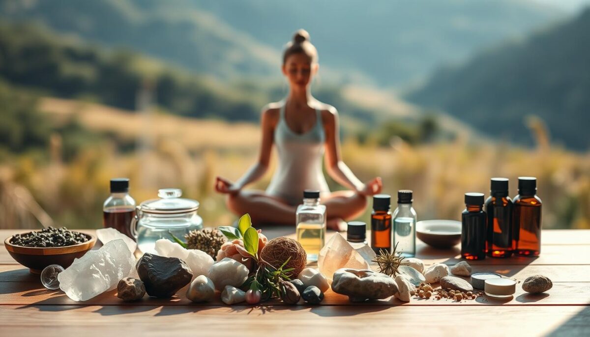Métodos naturais incluem fitoterapia e cromoterapia. Aromaterapia e óleos essenciais também são comuns. Além disso, a cristaloterapia usa propriedades minerais para equilíbrio e cura.