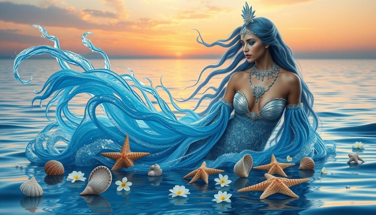 - Pinturas que capturam a essência da deusa e suas manifestações no mar.