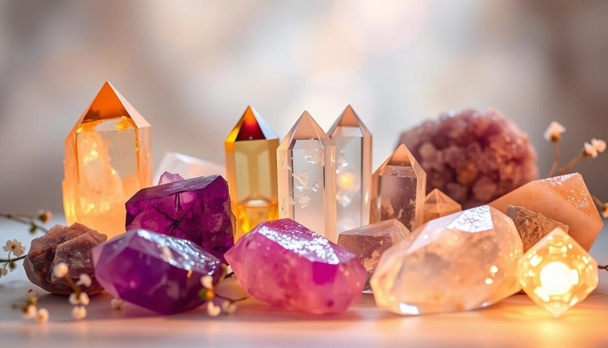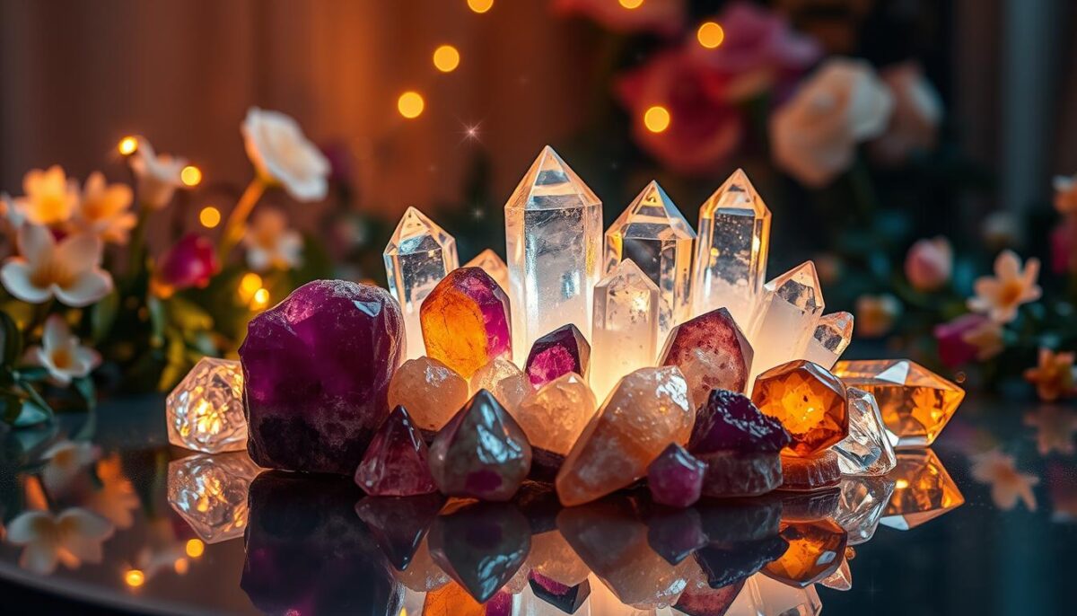 Para criar um ambiente positivo, é essencial saber usar cristais de forma harmoniosa. A combinação certa de cristais energizantes pode aumentar a energia positiva em casa. Isso traz equilíbrio e bem-estar. Cada cristal tem um significado único, que pode atrair boas vibrações.
