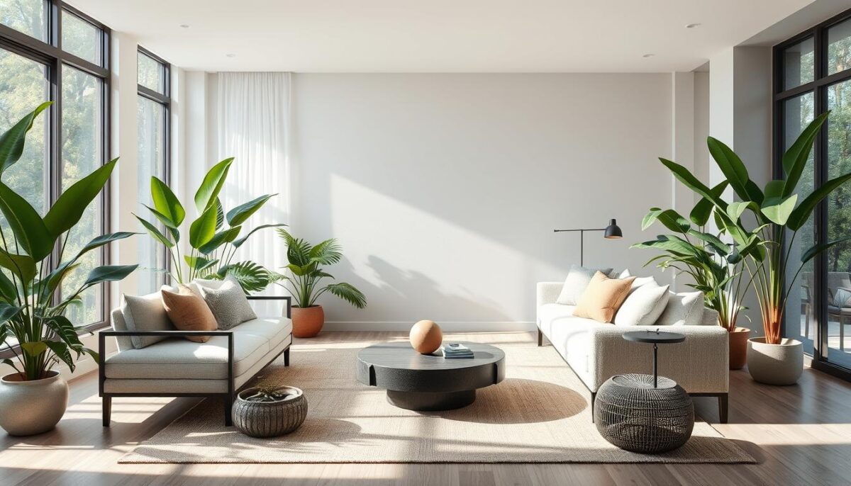 Os elementos decorativos são essenciais para um ambiente harmonioso. Prefira cores calmas, como bege, verde e azul, para promover a calma. Plantas, quadros e esculturas podem adicionar personalidade ao seu espaço.