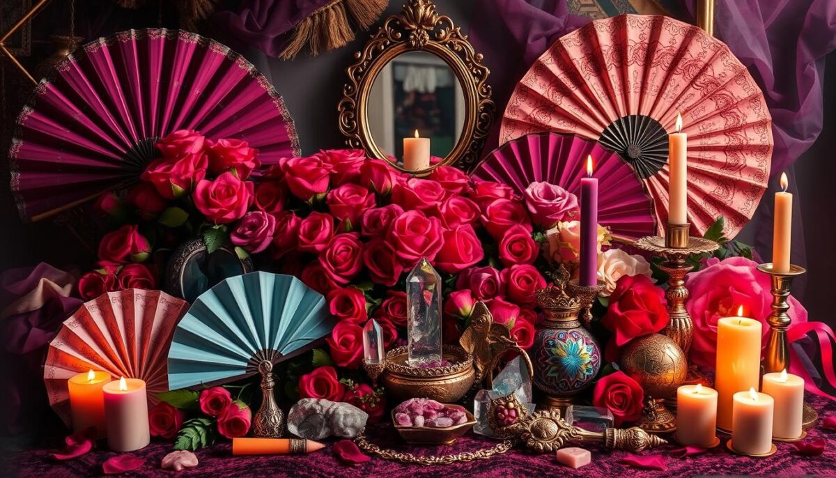 Dona Menina Pomba Gira é uma figura cheia de símbolos e objetos sagrados. Esses itens são essenciais nos cultos feitos para ela. Eles ajudam a chamar sua energia e proteção em rituais.