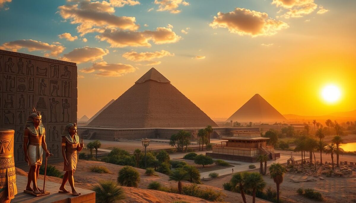 A civilização do Nilo é incrivelmente antiga e cheia de história. Ela tem uma cultura milenar do egito que se estende por milhares de anos. Vamos explorar como o império egípcio surgiu, a era dourada dos faraós e o declínio dessa civilização.