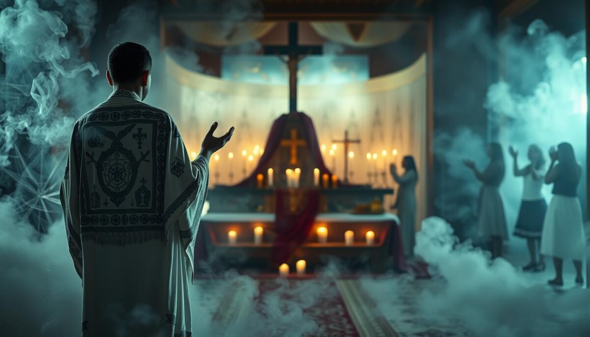 | Rituais de limpeza | Uso de incenso e símbolo INRI para purificação energética |