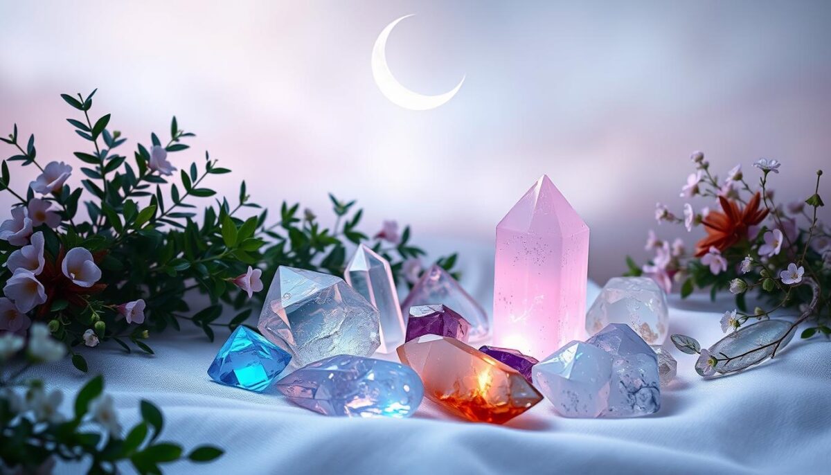 A cristaloterapia ajuda a equilibrar a energia emocional na Lua em Câncer. Ela usa cristais e pedras para capturar, mudar e liberar energias. Isso melhora o bem-estar emocional e espiritual.