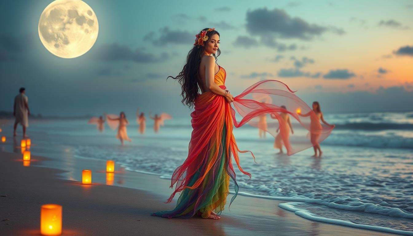 A Menina da Praia Pomba Gira é uma entidade espiritual da Umbanda. Ela simboliza liberdade, amor e diversidade. É muito importante nas práticas espirituais.