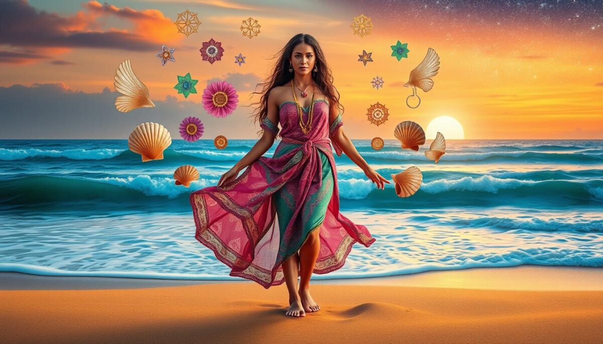 A Menina da Praia Pomba Gira é uma entidade espiritualmente rica. Ela simboliza feminilidade e liberdade. Seu papel nos rituais de Umbanda mostra a importância de suas características.