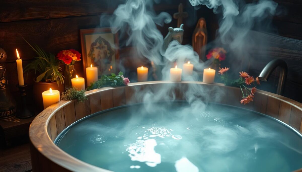 - Banhos de ervas: Banhos com ervas purificam a aura e afastam energias negativas.