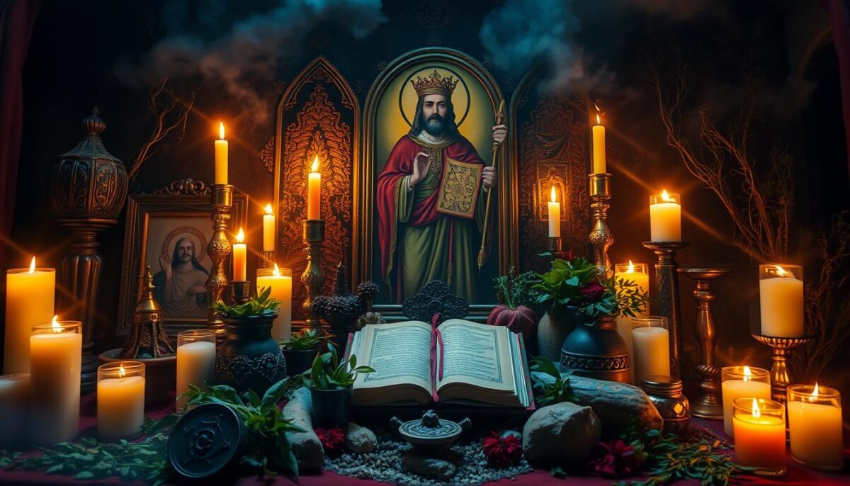 Para potencializar essa magia, os devotos usam orações específicas e elementos simbólicos. Essa conexão com São Cipriano ajuda a repelir influências negativas. Também atrai energias positivas e reconfortantes.