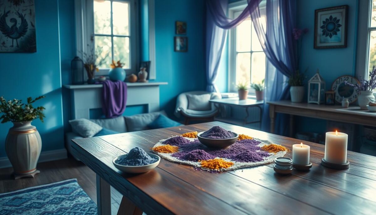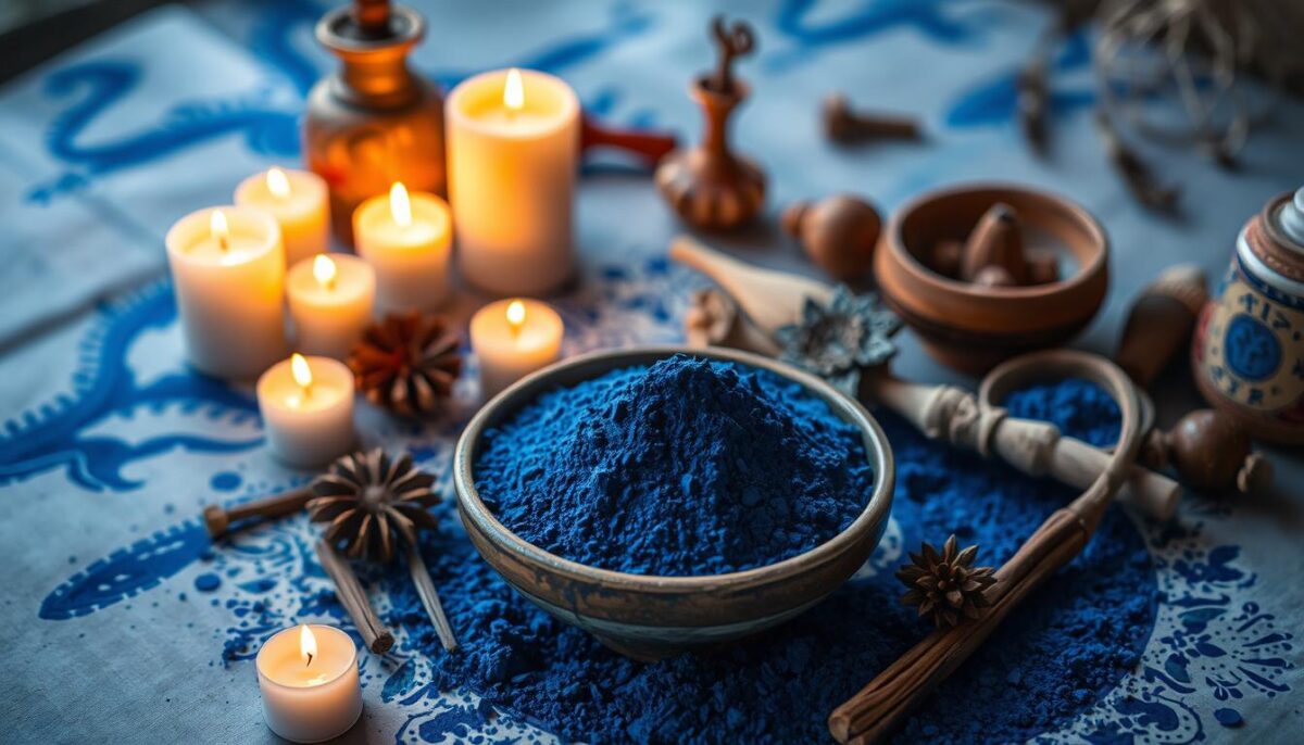 - Rituais com anil para limpeza espiritual: Esses rituais limpam a energia de um espaço ou pessoa.