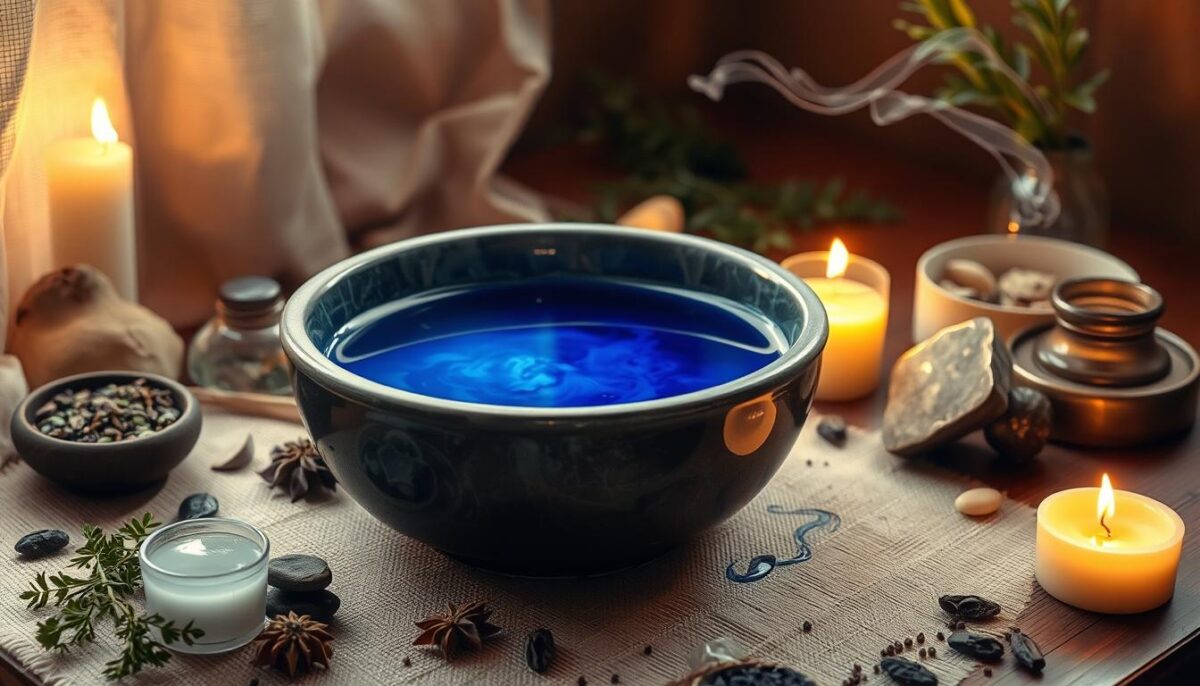 O anil é muito usado em rituais de limpeza espiritual. Especialmente em banhos de purificação com anil. Esses banhos ajudam a limpar o espírito e proteger contra energias negativas. Entender o papel do anil nos banhos de purificação nos ajuda a aproveitar seus benefícios.