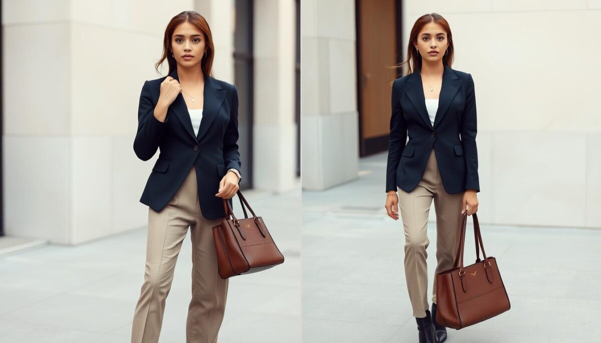 - Acessórios: bijuterias discretas e bolsas funcionais.