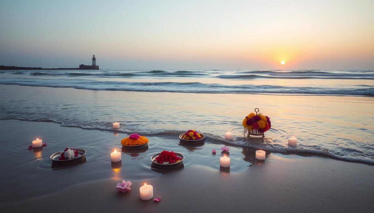 Escolher os locais certos para oferendas é crucial. Isso depende da intenção e da energia que se deseja transmitir. Com a escolha correta, as oferendas são entregues de maneira eficaz. Isso honra a rainha do mar e promove a harmonia espiritual.