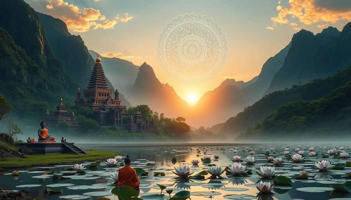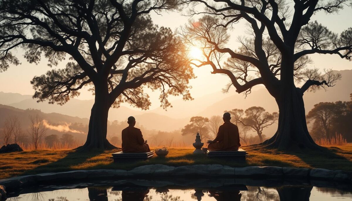 Essa tradição espiritual não é só ensinamentos. É uma prática que nos guia na vida. Ela aborda questões que todos enfrentamos. Vamos descobrir juntos os conceitos chave e a importância do budismo hoje em dia.