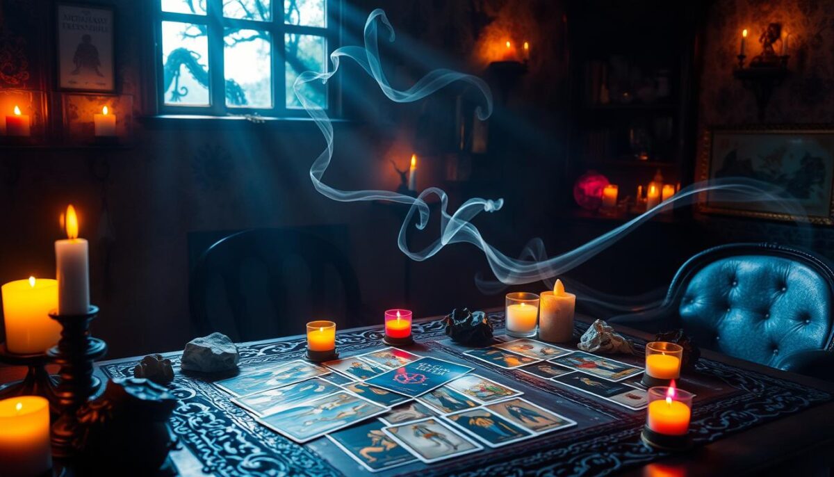 Qual é o segredo para tirar o máximo das leituras de tarot? Os rituais mágicos podem ser a chave. Eles ajudam a ver mais fundo os significados das cartas. Com rituais e tarot online, a conexão com o tarot melhora, trazendo respostas mais claras.